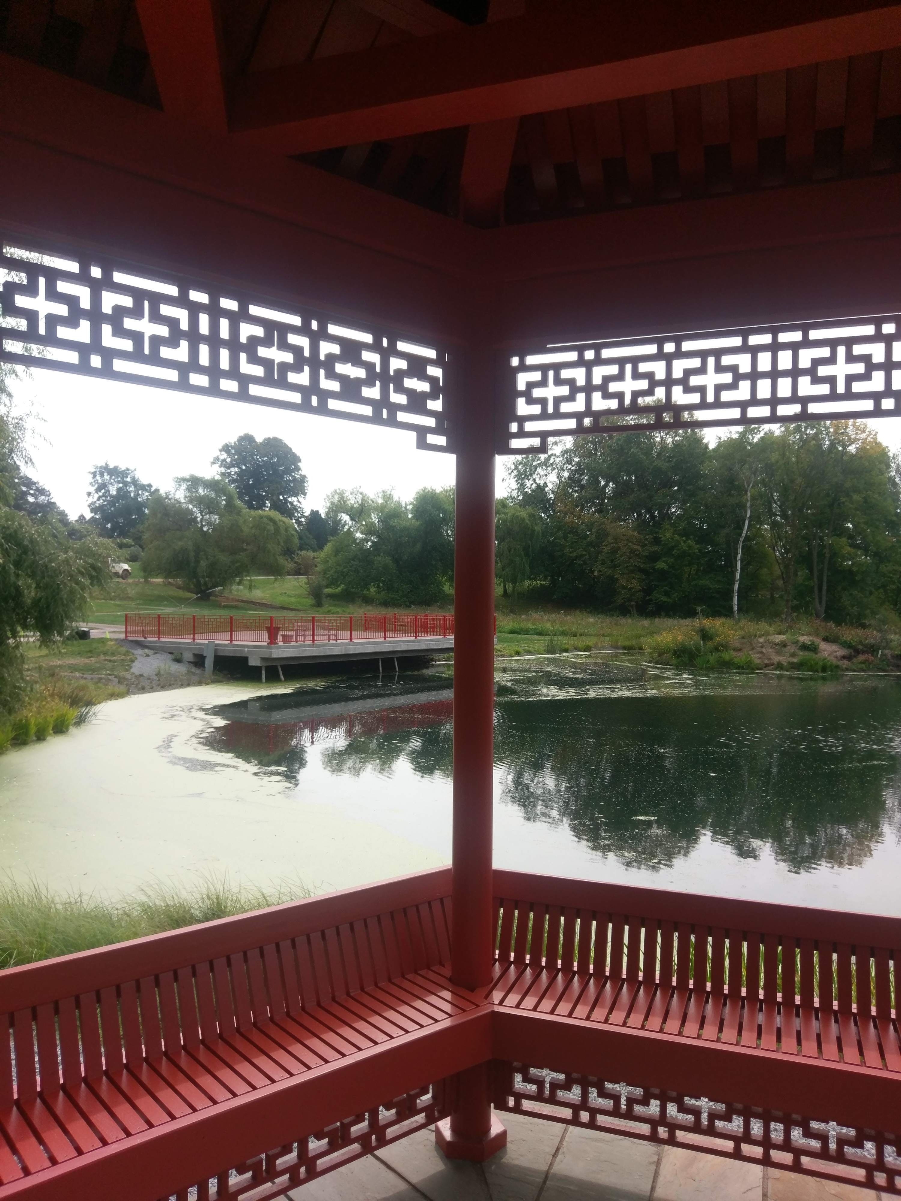 If you’ve been to the Arboretum in Chaska recently you may have noticed a little commotion and construction on the far southwest side of the facility. This is a new installment for a full Chinese garden path that features vegetation, sculpture and design from the other side of the planet! One particular piece here will most defiantly draw you in and possibly be inviting enough to relax in for a couple minutes, the Peony Pavilion!